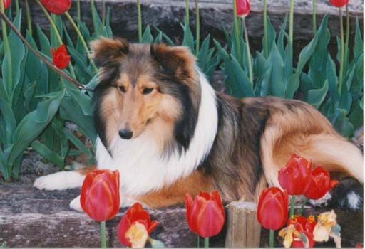 night on August 17, Sunny presented us with 5 gorgeous puppies... 2 Sable merle males, 1 Blue Merle male, 1 Sable male, and 1 Sable female. All are beautifully marked and show a lot of promise. I decided to grow out Mark as a show dog here at Snovali but he hasn't turned out and is now looking for a pet home. Cammi is being grown out at Woodhue. These pups had their eyes checked on October 5 and all are normal. |