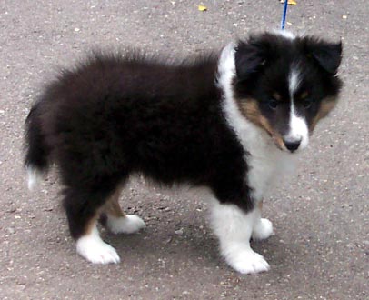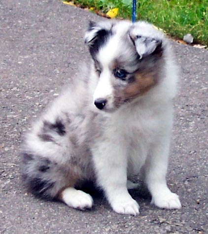 (died at 3 days old)1 tricolor girl Unfortunately, the smallest boy, a blue, didn't make it. He was doing real well until he accidentally got laid on. Oh well... Anyone who has raised a litter knows that no matter what you do there are some pups you just can't save. The girl I lost on the third day... She was fine when I went to sleep and when I woke up early the next morning it was already too late for her.