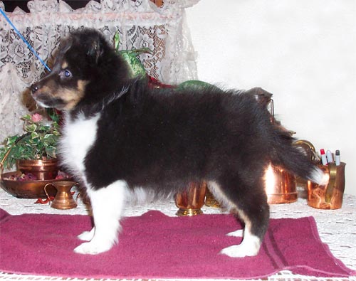 Ja'Dore is a beautiful bi-black girl that I am leasing from Dori Stadler of TouchTone Shelties in Redgranite, WI. I am co-breeding this litter with Dori. Ja'Dore has the topline and neck that TJ needs and TJ has the shorter, typier head to add balance. This is a bi-black to bi-factored blue merle breeding that should result in puppies of many colors, blue, tricolor, bi-blue, & bi-black. Ja'Dore has already proven herself to be a good producer and we already have had one of her sons out in the ring turning heads with three reserves in a row (at 13 months old) and a point in August (15 months old). Click here to read the litter's "Story" There are a couple pups that I am really watching right now as possible keepers, the rest are available to good pet/performance homes. If you are interested in a puppy from this litter, please contact us... |