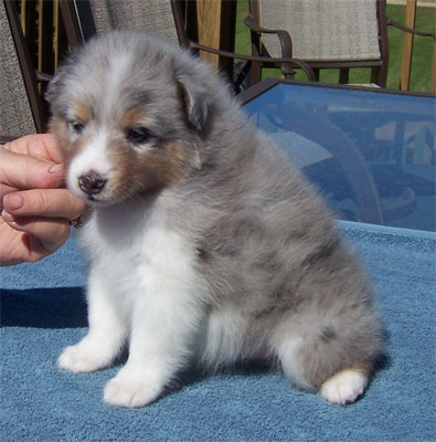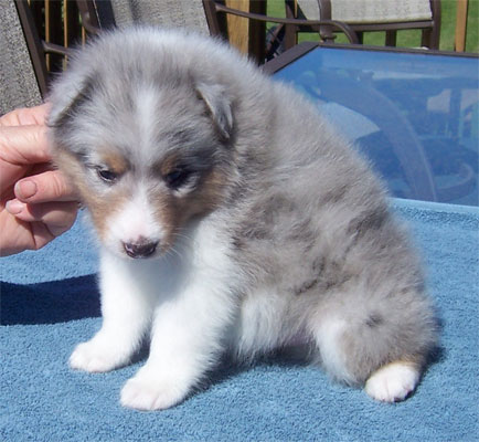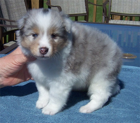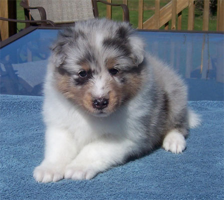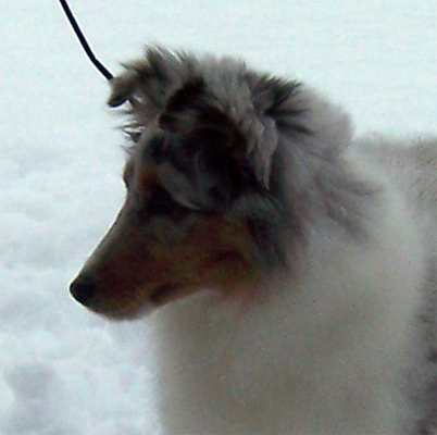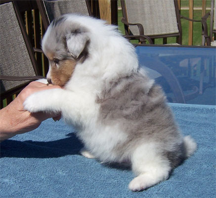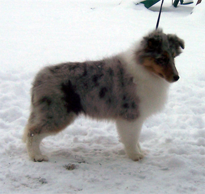 This breeding is one that should turn out very nice. Stevie has the softer expression and prettier eye, as well as a very elegant profile, where Comet has the attitude, coat, movement and several other great attributes to contribute to the cross. We should end up with some very outgoing attitudes and LOTS of personality! Comet presented us with 5 gorgeous blue